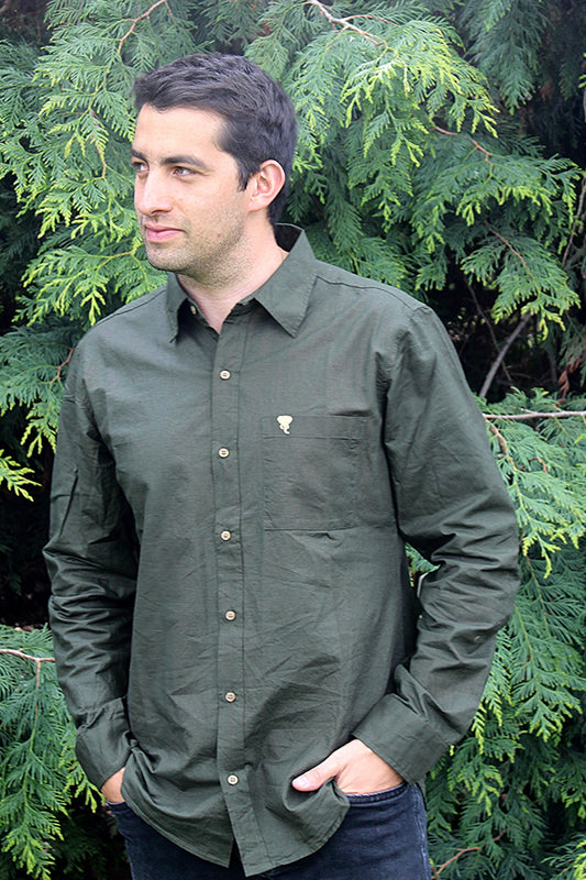 Camisa Kashan Verde Musgo Algodón puro y Lino