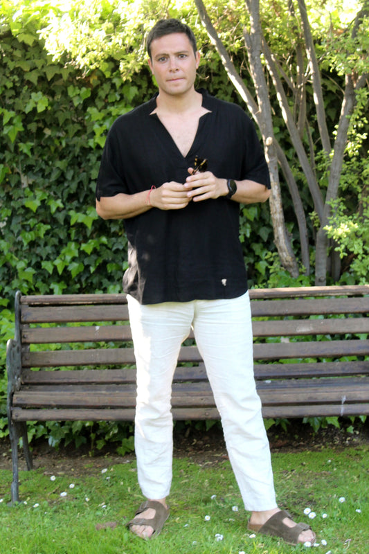 Camisa Kashan Verde Musgo Algodón puro y Lino